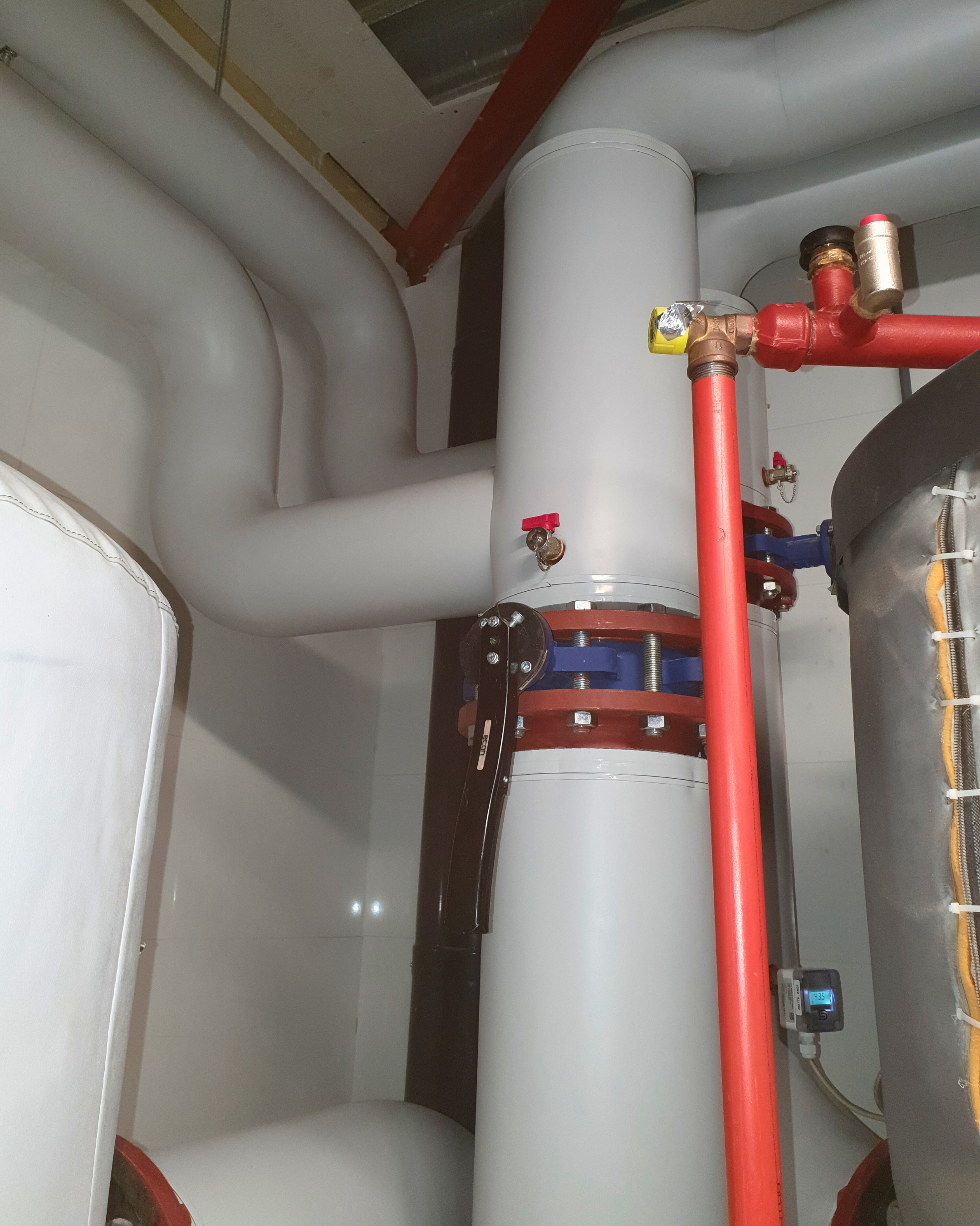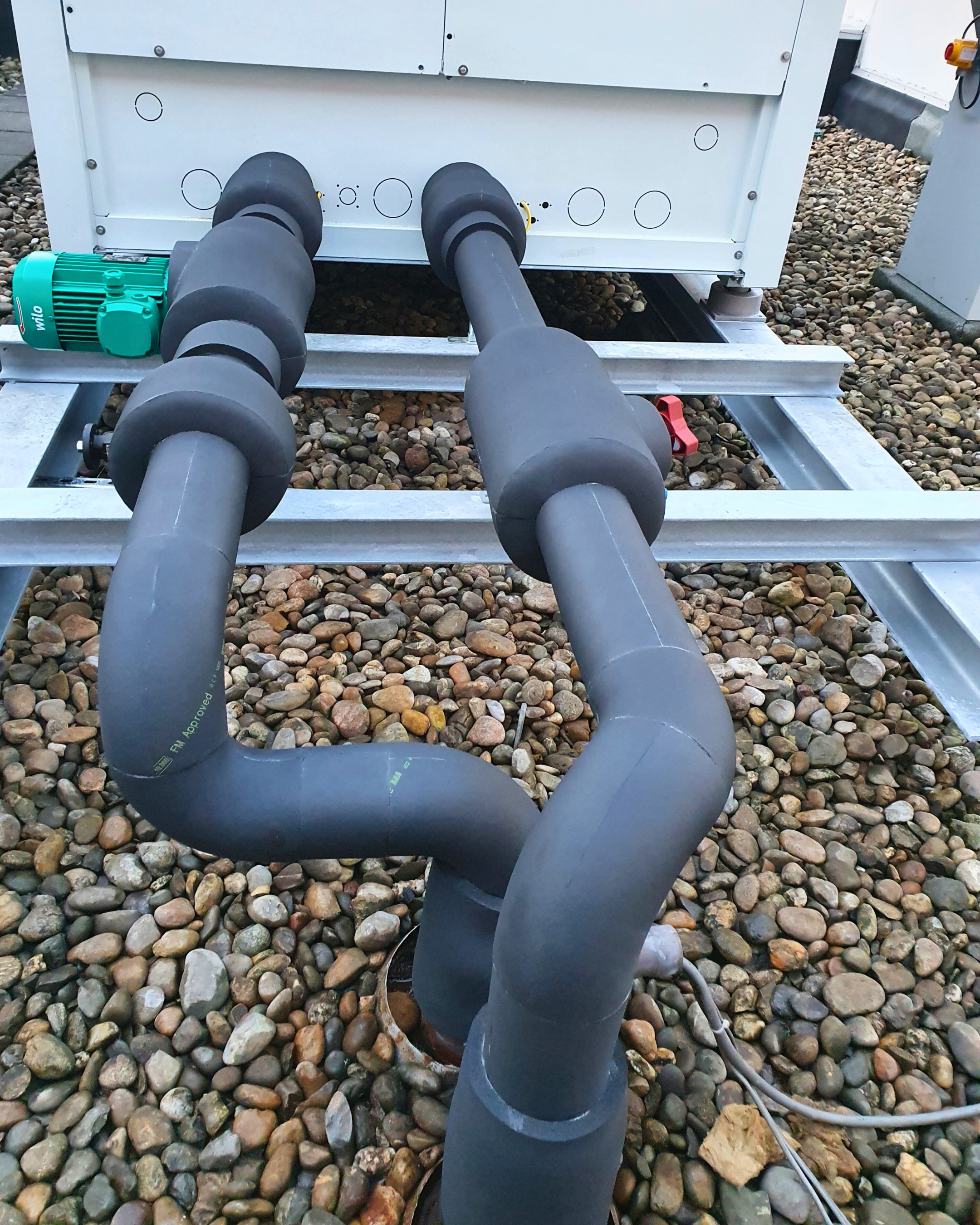 isolatiemateriaal om warmteverlies of -winst te verminderen, afhankelijk van het type vloeistof dat door de leidingen stroomt.